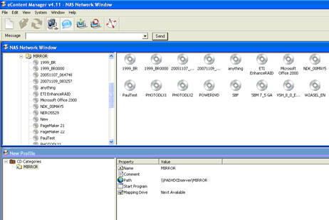 NAStart is a powerful software utility that discovers and administers CD/DVD servers on the network, and remotely loads disc images into the CD/DVD server. Use NAStart to display and modify the setting you have created. You can also perform server settings replication from a configured server to other NAS servers on the network. Server parameters of a NAS server can be imported into other NAS server to avoid tedious setup process to each individual unit on the network. You can either duplicate a whole CD or build an image from a group of files.