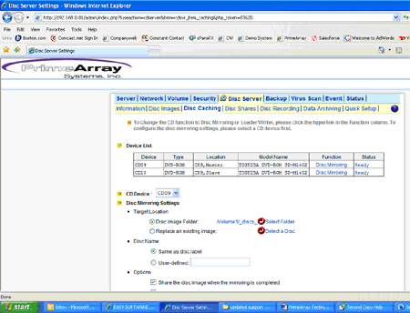 Problem: CD/DVD ejects as soon as you insert it into the PrimeArray CD/DVD drive and will not mirror.