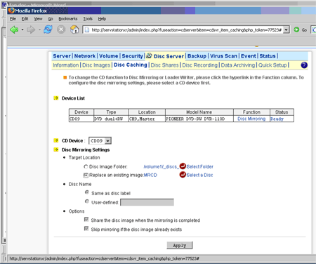 - The function field should read "Disc Mirroring." If it reads something different, click on the function to change it. Check the "Disc Mirroring" field and hit apply.