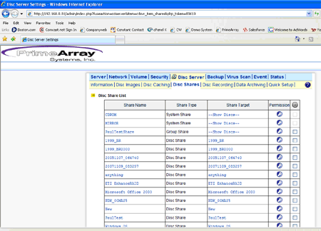 To configure a PrimeArray CD/DVD server to function as a NAS device, follow these steps: